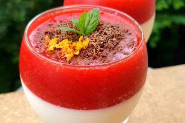 Панна котта — это итальянский десерт, который традиционно готовят из жирных сливок, желатина и сахара.