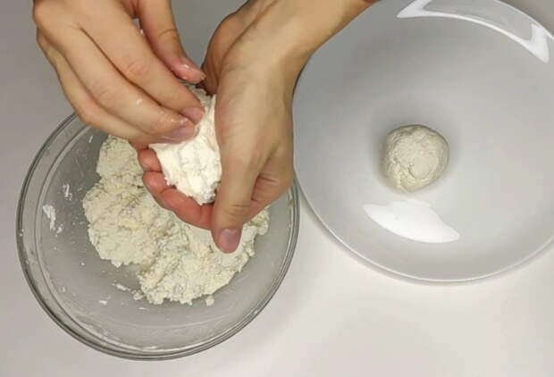 - Затем из полученной сырной массы формируем небольшие шарики. Желательно, чтобы заготовки были примерно одного размера, чтобы в дальнейшем они равномерно прожарились.