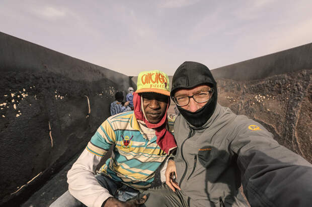 Однажды ехал в открытой грузовой вагонетке, которая уголь возит. Это было в Африке, в Мавритании, я ехал в Сахару. Со мной путешествовали два бербера, в арабских халатах и в чалмах. И два африканца. Я сначала так обрадовался, потому что ситуация казалась совершенной: ветерок дул и можно было встать по пояс в этой вагонетке и фотографировать. Вокруг песчаные дюны, верблюды — красивые места. Но как только мы набрали скорость, я понял, что все не так радужно. Ветер поднял угольную пыль, я был вынужден спрятать фотоаппарат, все забилось сажей, сам я был весь черный. А потом, когда настала ночь, стало настолько холодно, что мы не могли спать. У одного из африканцев было одеяло, которое он постелил на железный пол этой ржавой, с дырами, из которых дуло, вагонетки. Мы укрылись, лежим, я посредине, с одной стороны африканец, с другой — бербер. Так и ехали.