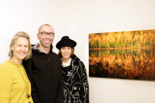 Нью-Йорк. Александр Химушин у своей фотографии с организаторами аукциона — Викторией Де Ротшильд (справа) и Карлой Бамбергер. © Александр Химушин / The World In Faces