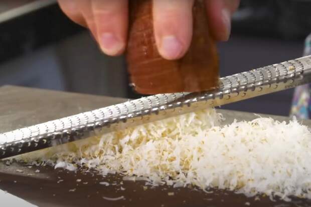 - Натри на мелкой терке сыр. Копченый адыгейский даст интересный привкус, но подойдет и любой другой хороший твердый сыр, например, пармезан. Ранее мы писали, почему Евгений Клопотенко считает пармезан больше специей, нежели сыром и рекомендует добавлять во все блюда.